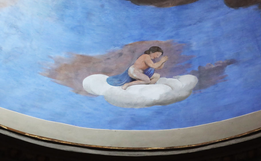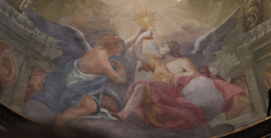 Il quadro sopra la cantoria affigurante la Cena in casa del fariseo, poco visibile a causa del cattivo stato di conservazione.