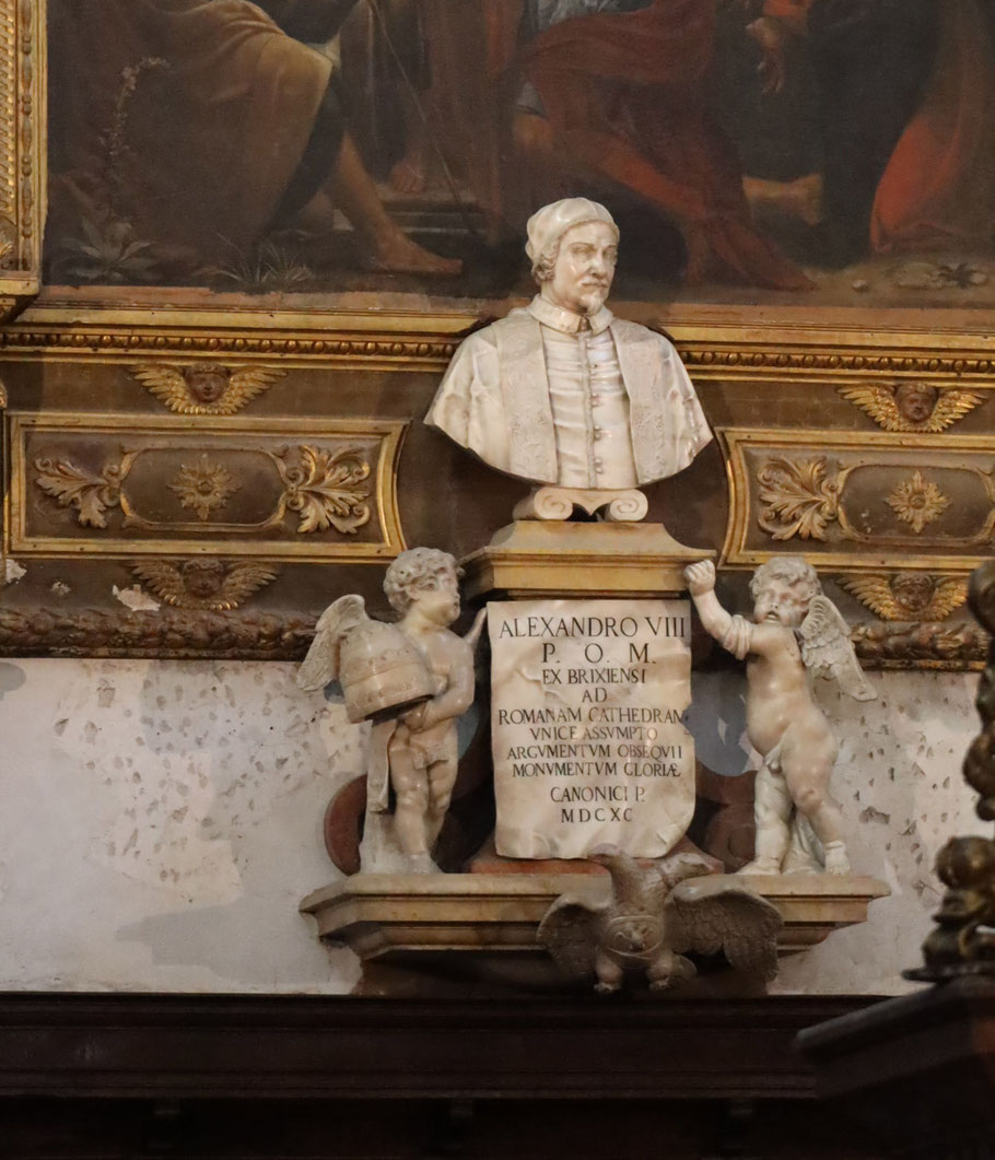Sotto la grande pala è posto un busto marmoreo raffigurante Papa Alessandro VIII, che fu cardinale a Brescia dal 1664 al 1674, opera di Orazio Marinali del 1690.