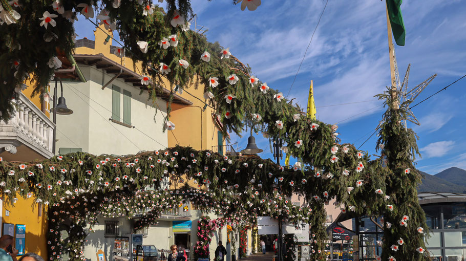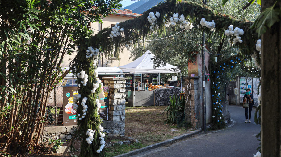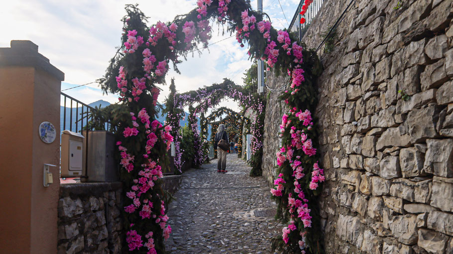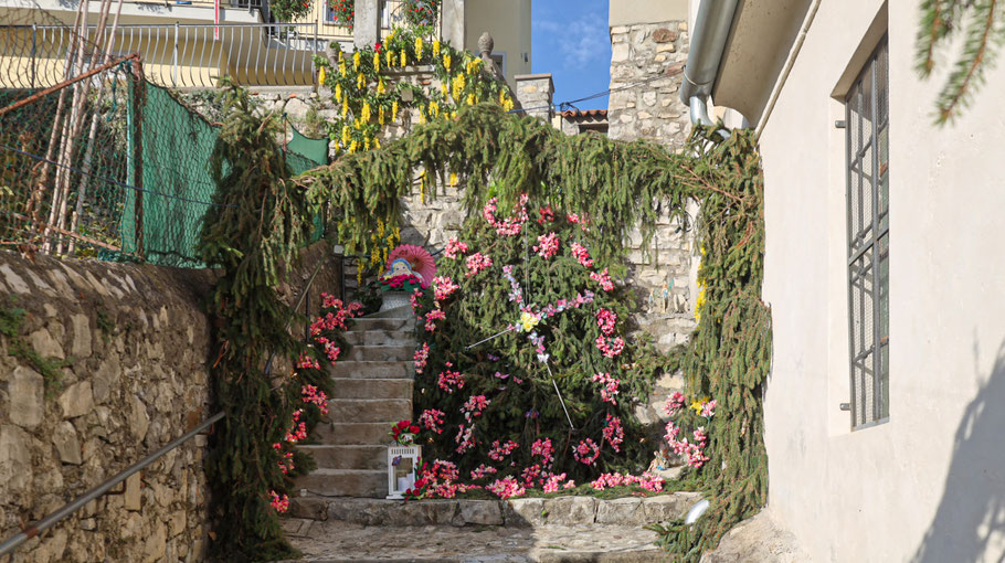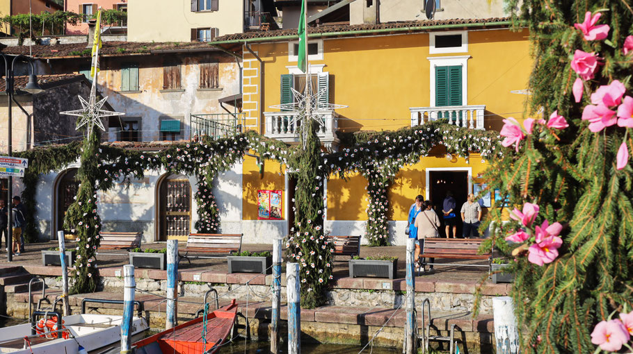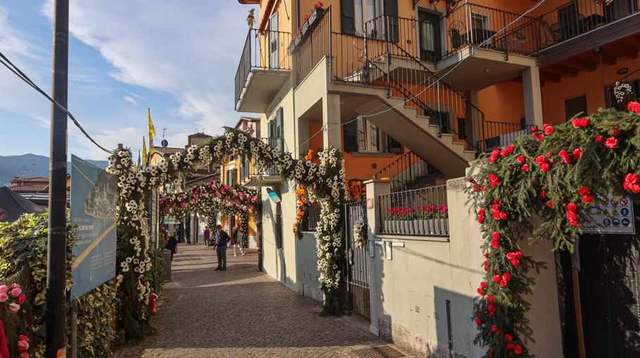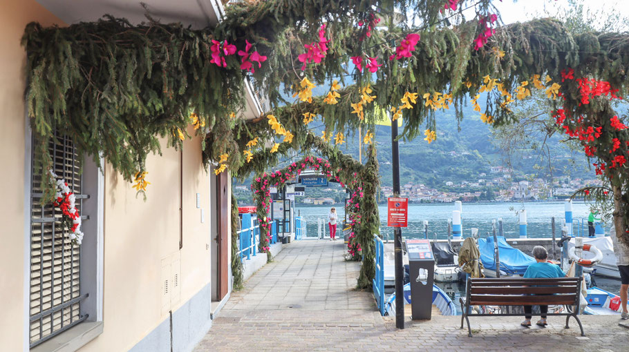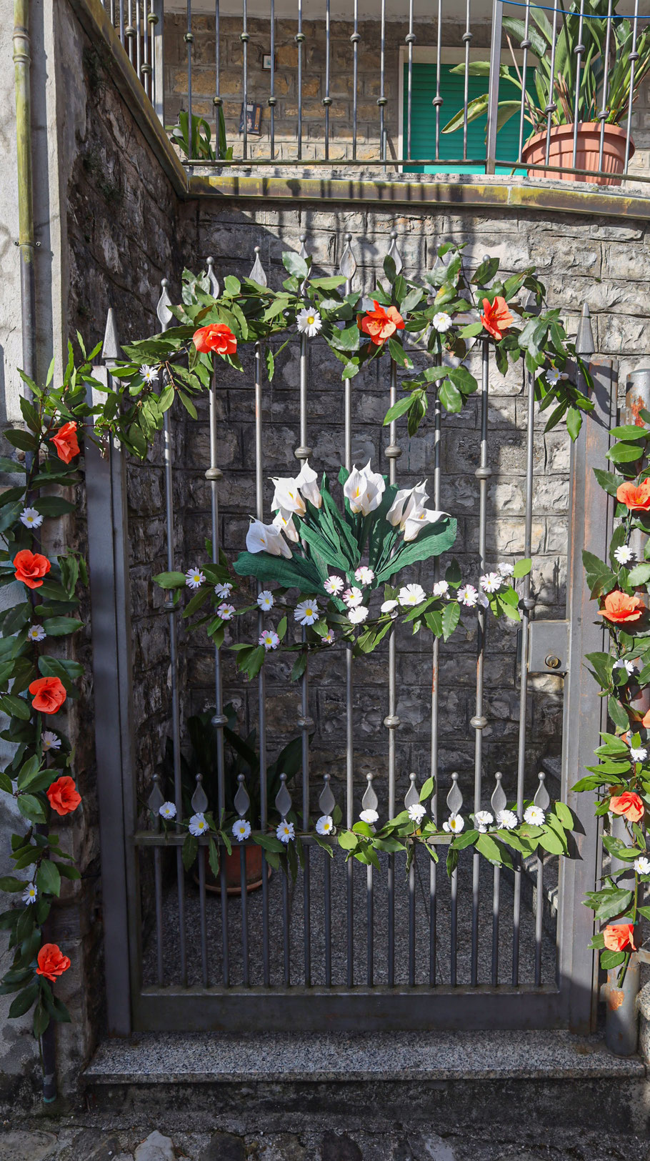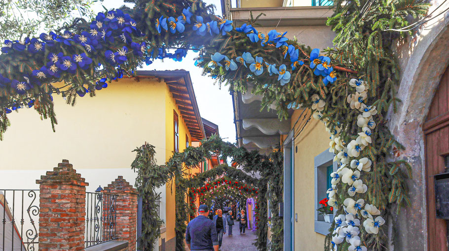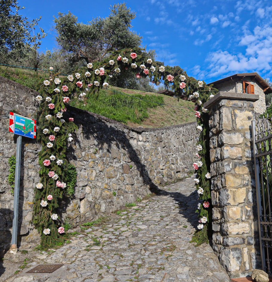 Per questa occasione i vicoli e le piazzette si trasformano in un bosco incantato: arcate di legno ricoperte di rami di pino e fiori coloratissimi.