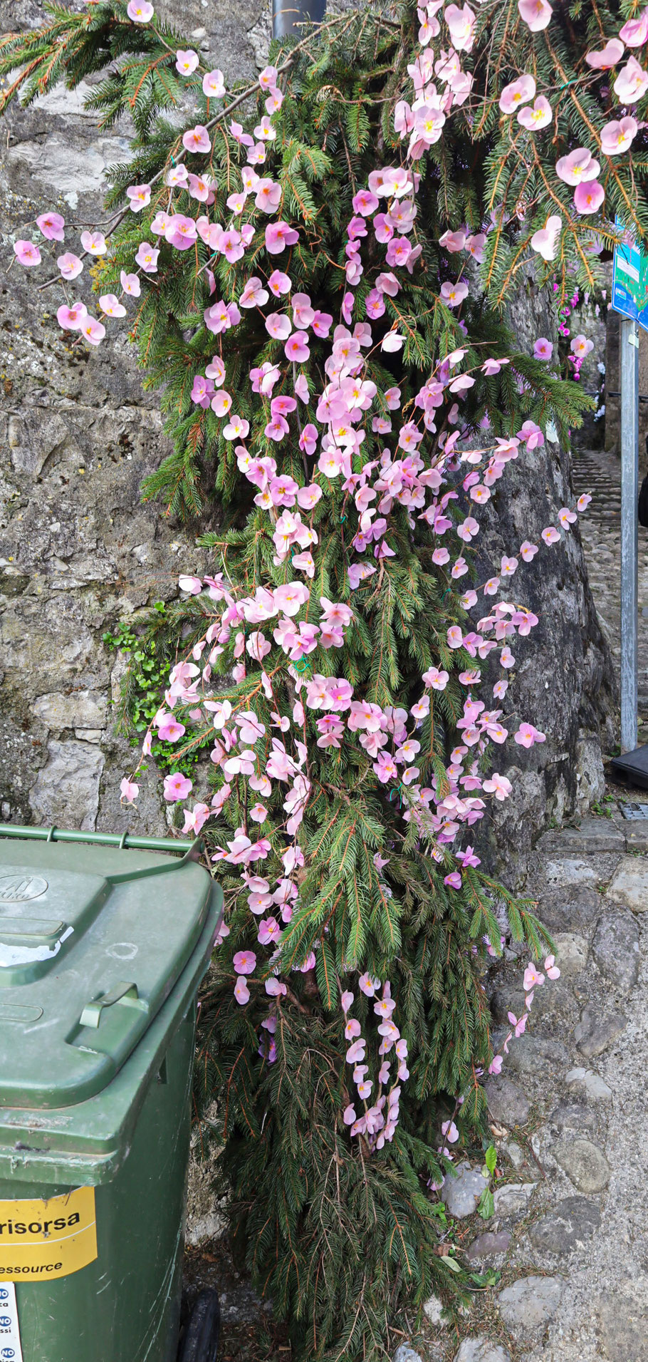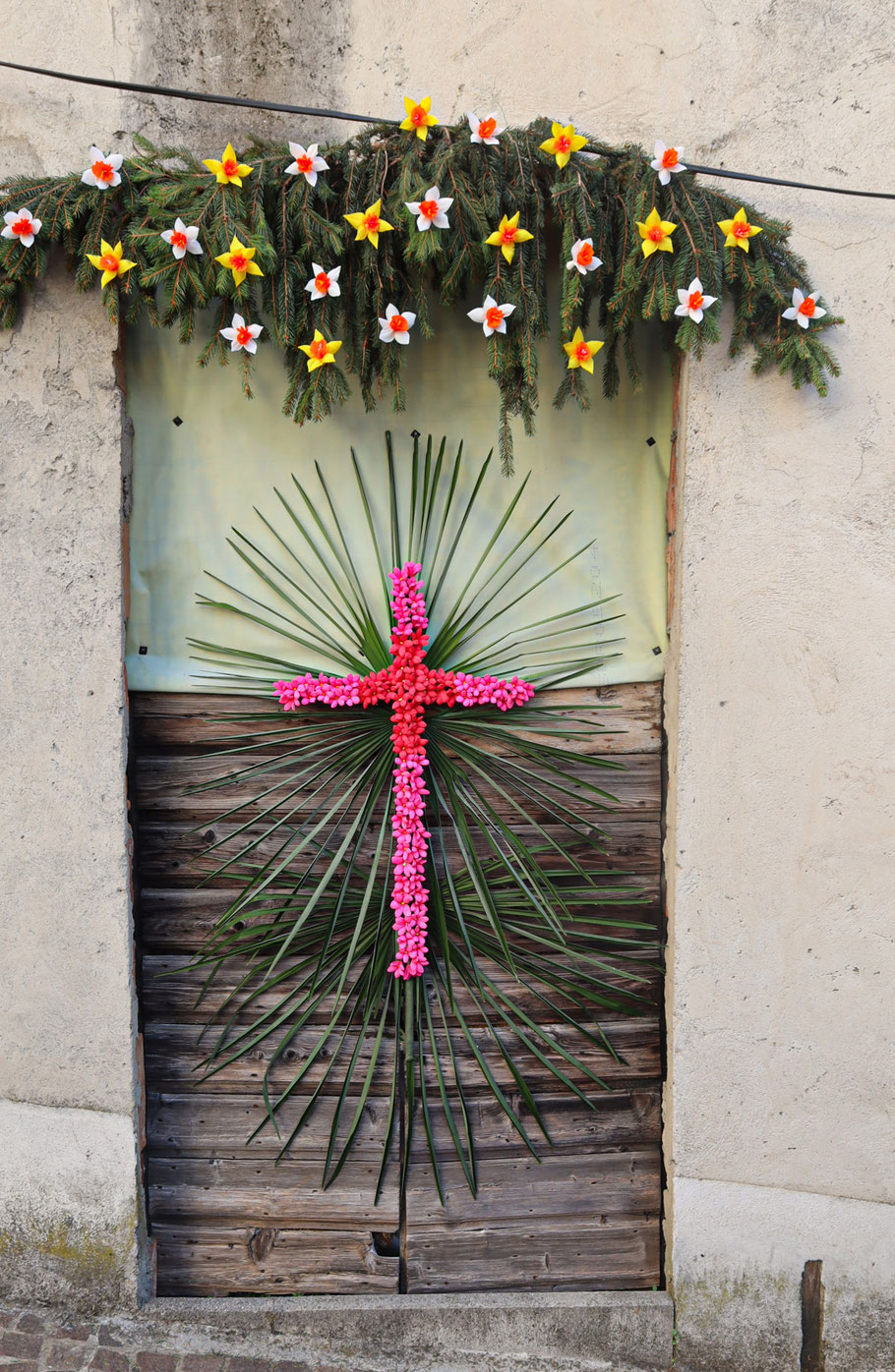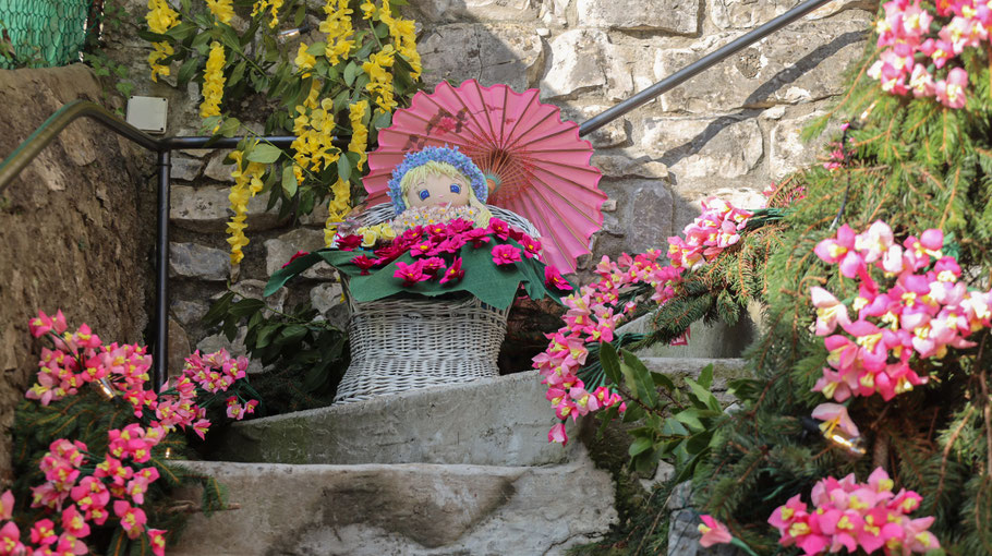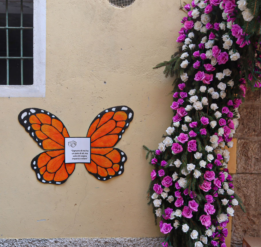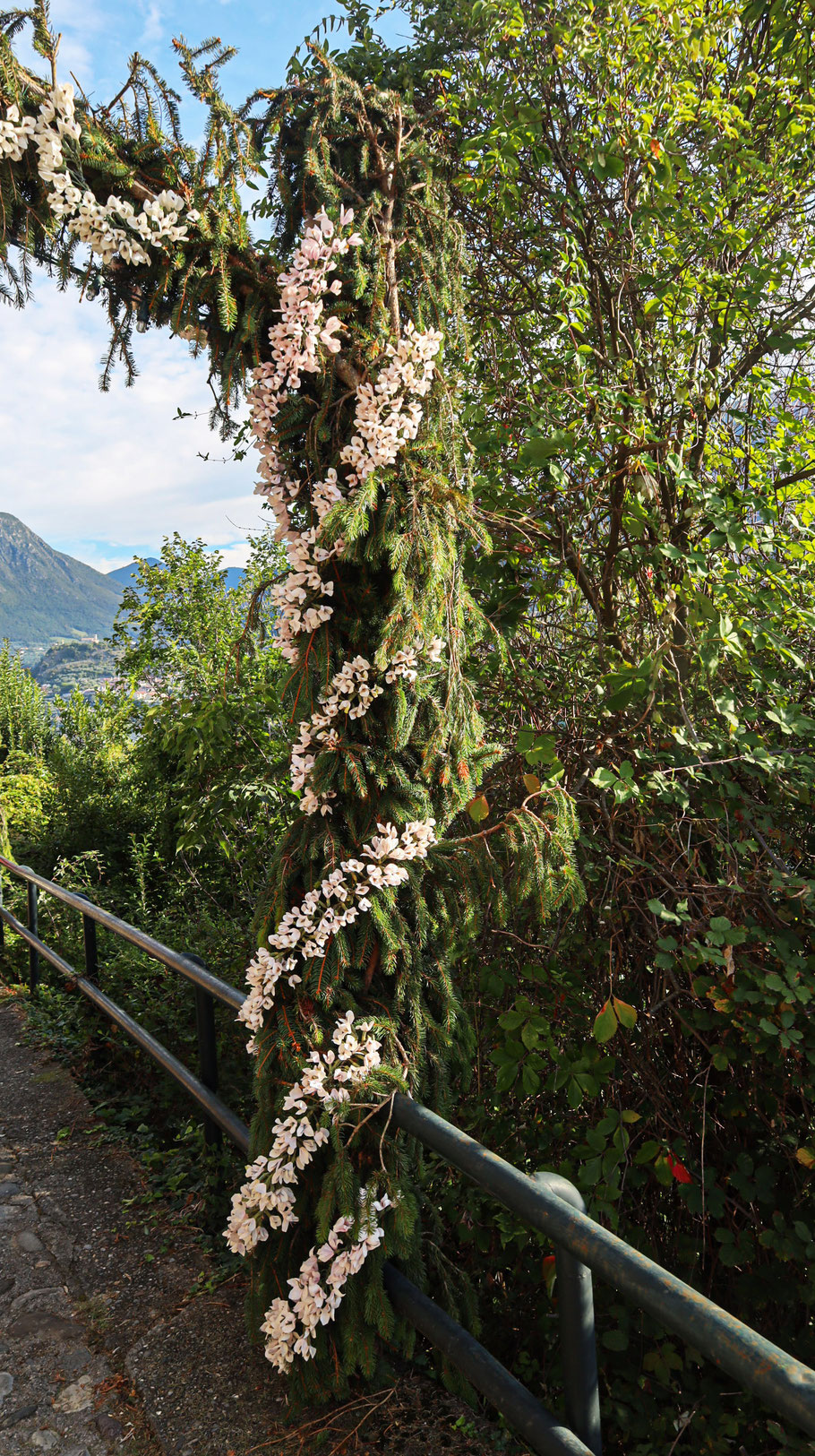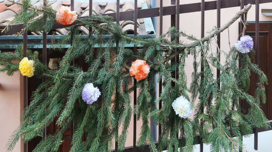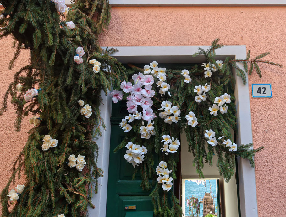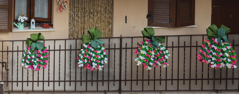 Per questa occasione i vicoli e le piazzette si trasformano in un bosco incantato: arcate di legno ricoperte di rami di pino e fiori coloratissimi.