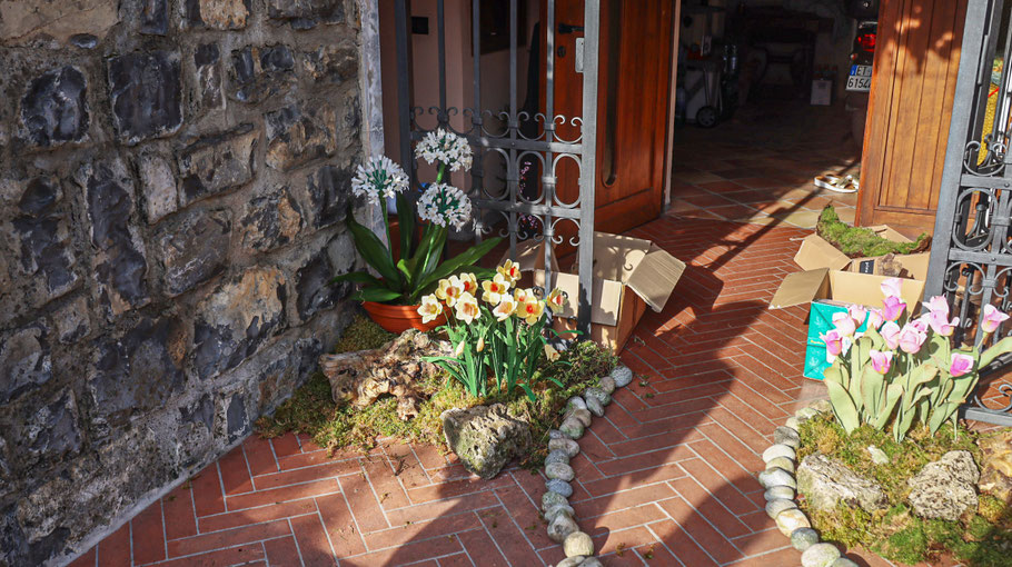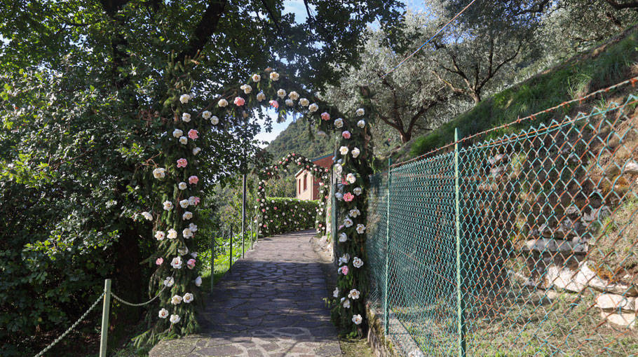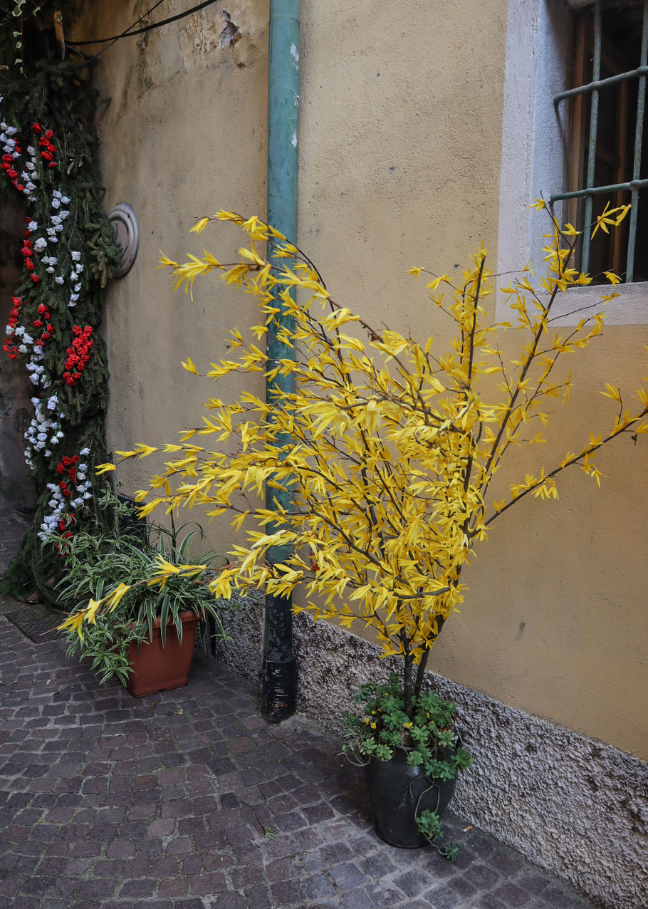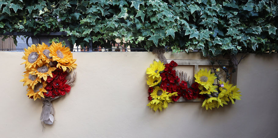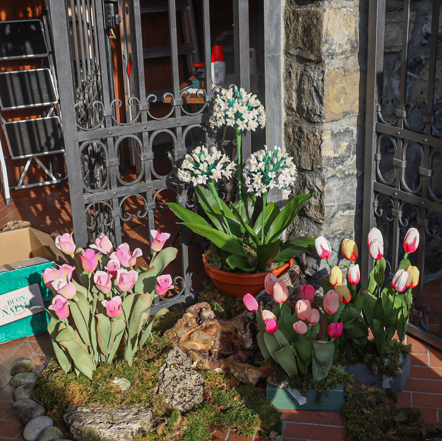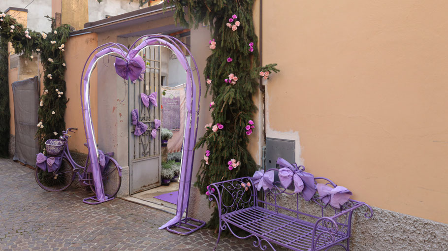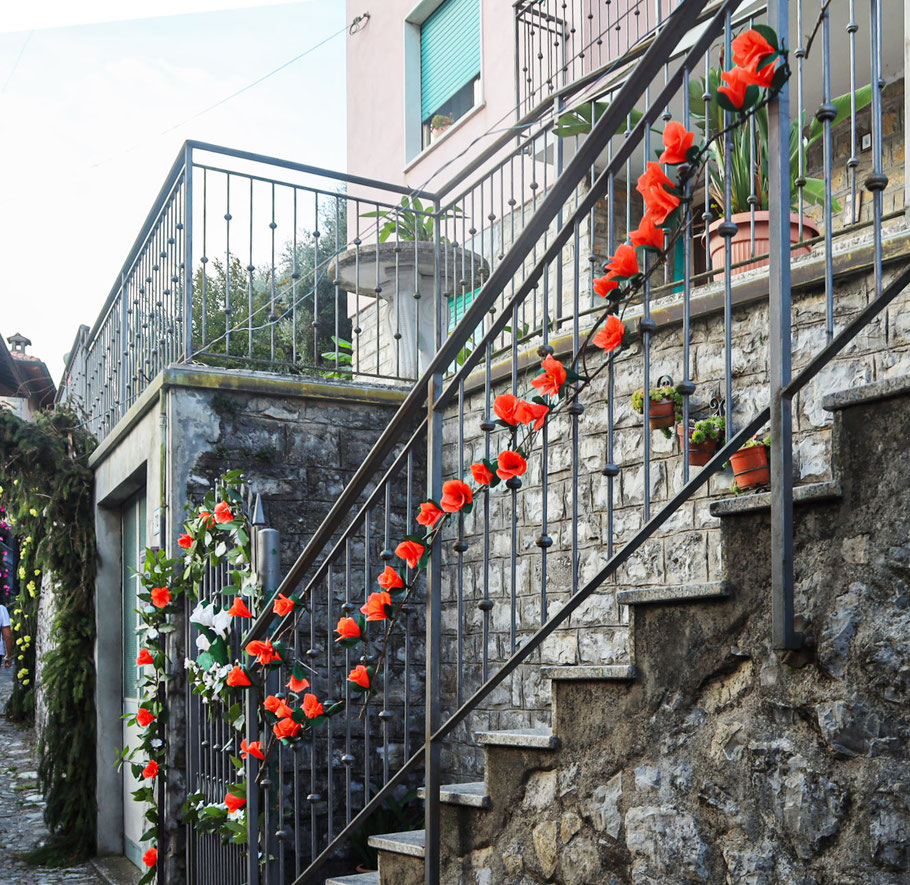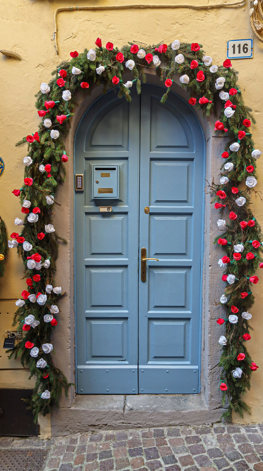 Per questa occasione i vicoli e le piazzette si trasformano in un bosco incantato: arcate di legno ricoperte di rami di pino e fiori coloratissimi.