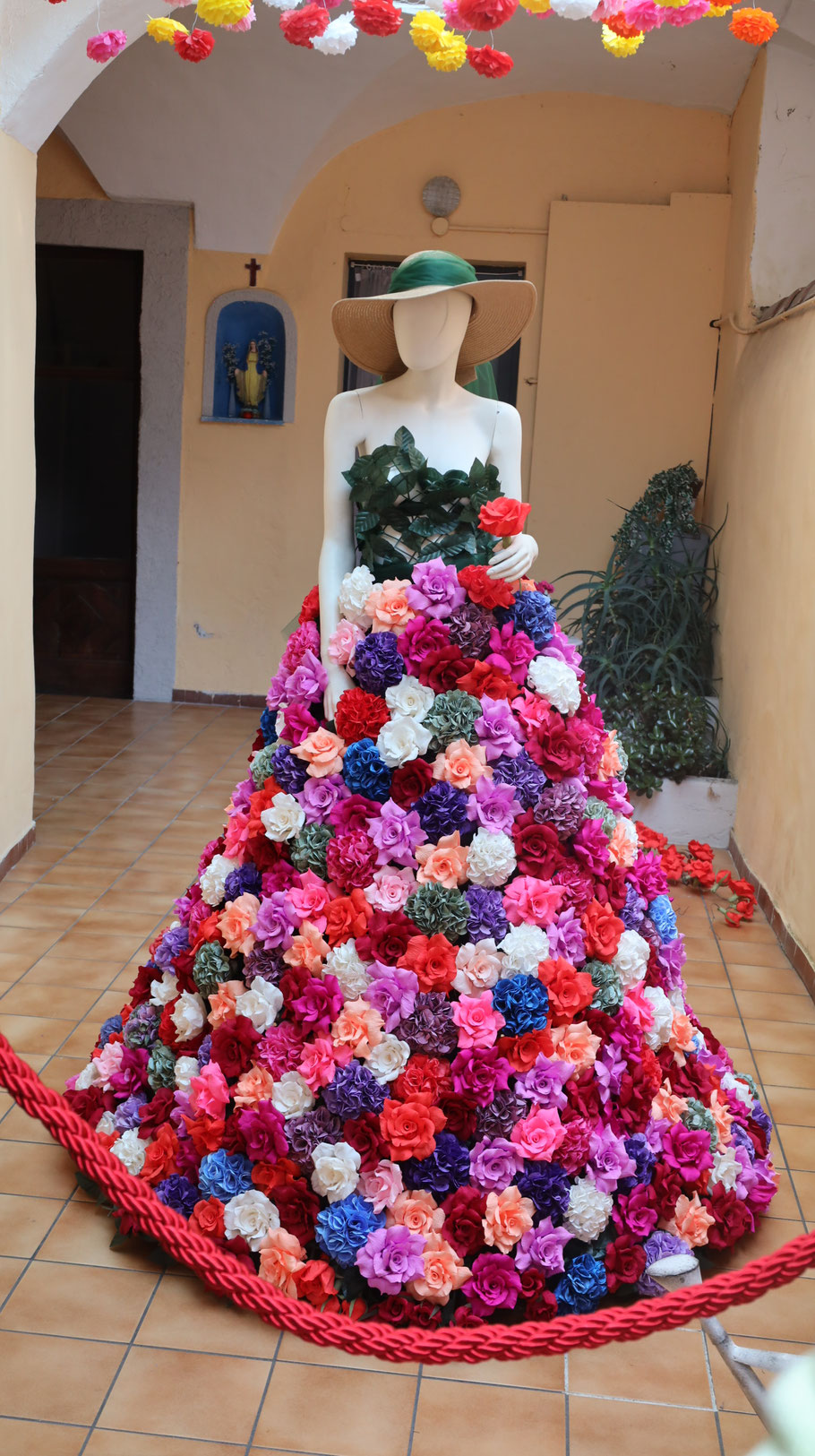 È conosciuta anche come Festa dei Fiori, per via dei meravigliosi addobbi floreali in carta (circa 200.000) che decorano archi, vie, festoni e luminarie.