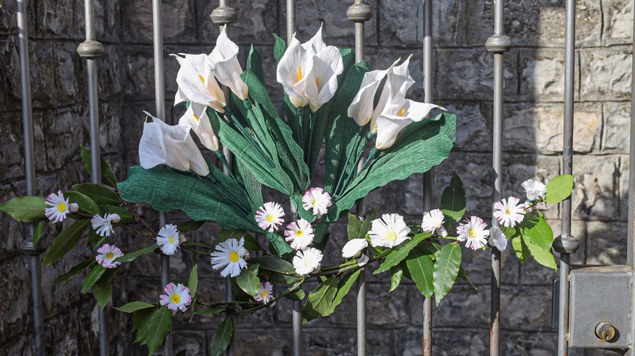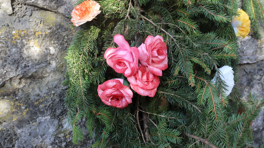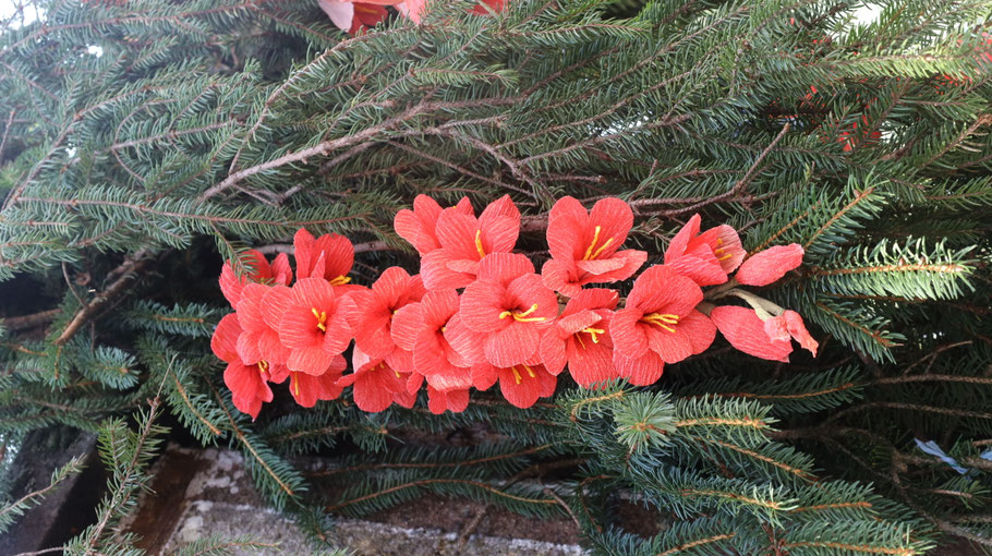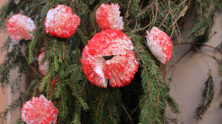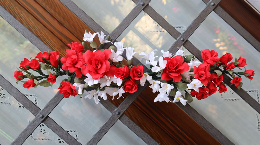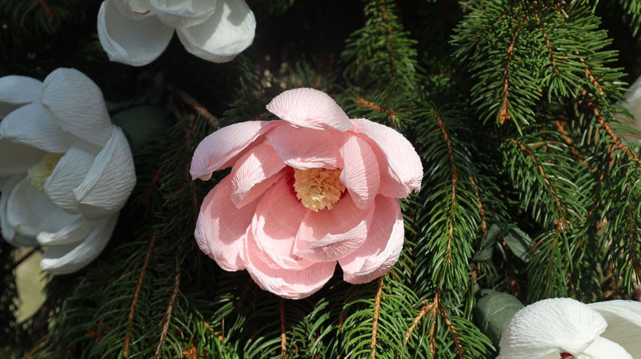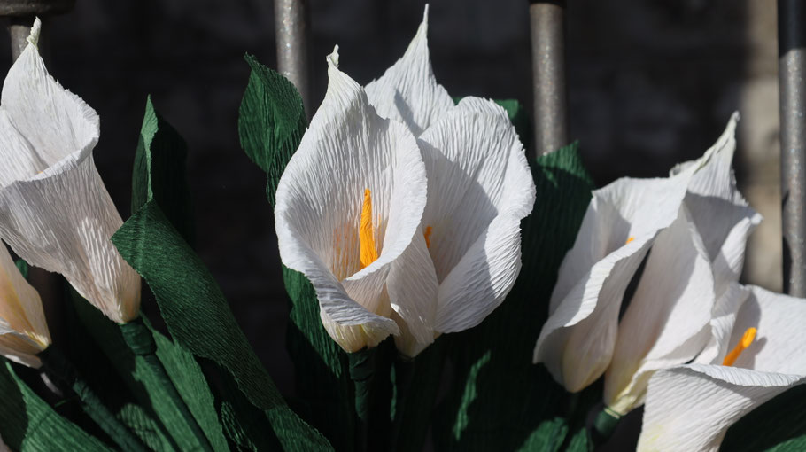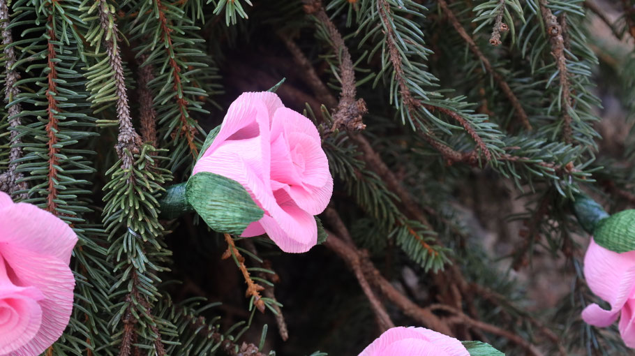 Ogni famiglia decora la propria casa con fiori di carta, spesso mantenendo segreti i modelli fino all’ultimo. La rosa è il fiore simbolo, ma si trovano anche orchidee, viole, clematidi e glicini.