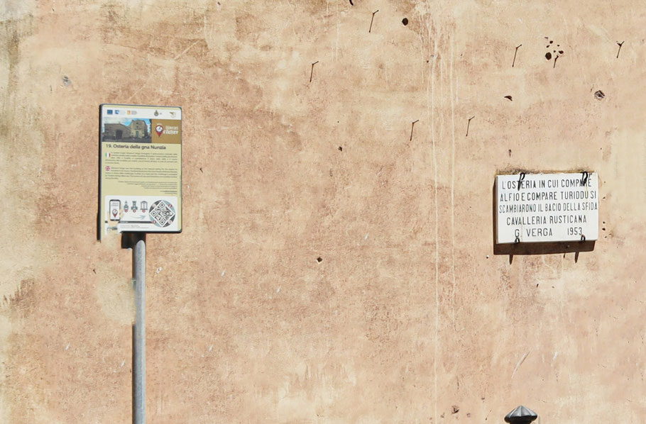 Osteria chiamata di Mamma Lucia (gna Nunzia o semplicemente Nunzia). E’ la mamma di Turioddu ed è la proprietaria del locale. In questo locale si svolgono alcune scene della novella di Giovanni Verga, La Cavalleria Rusticana, opera lirica di Pietro Mascagni.