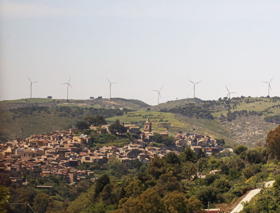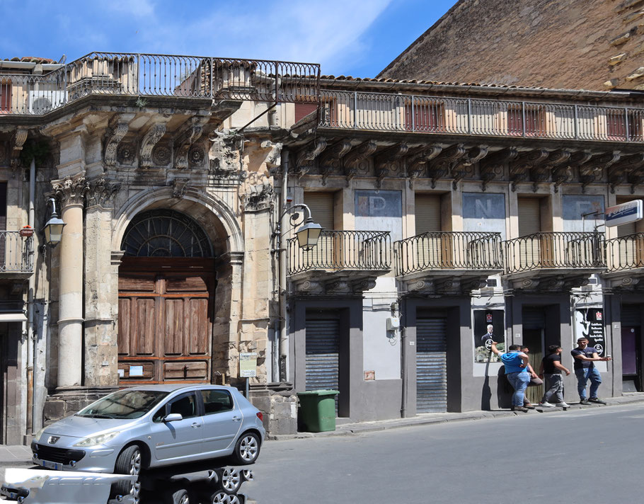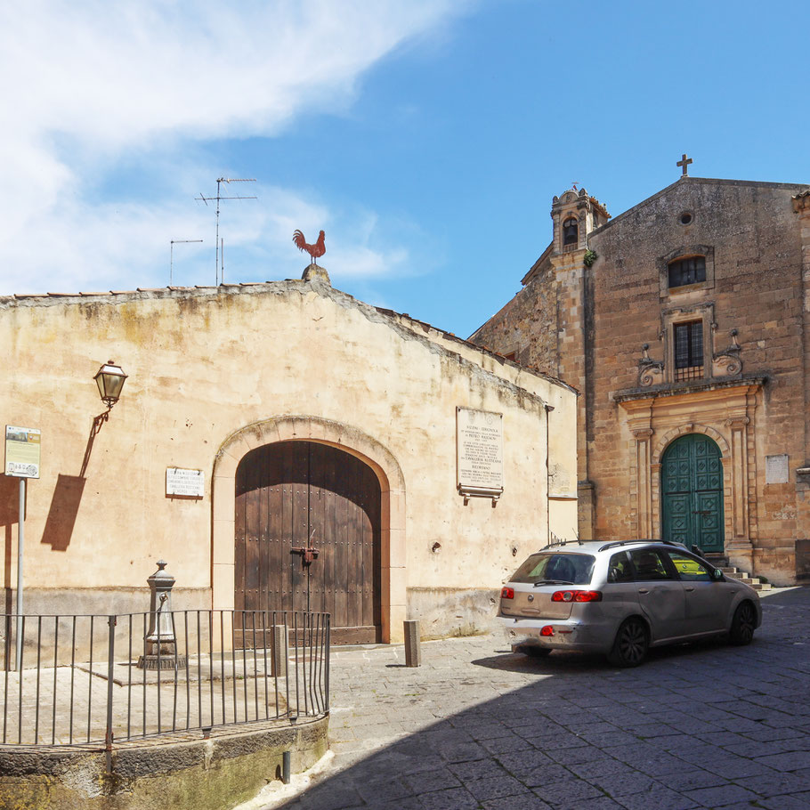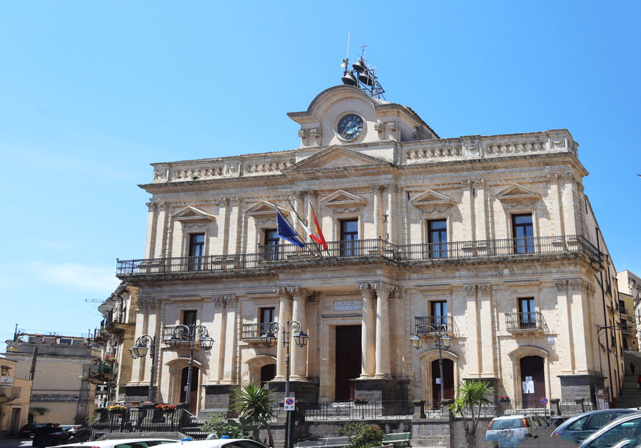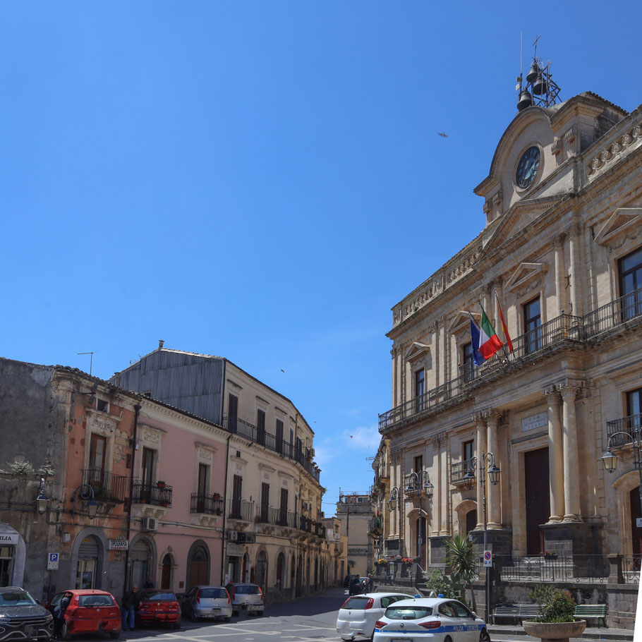 La Piazza Umberto I, cuore del paese, ospita il Palazzo di Città, il palazzo Verga e una caratteristica scalinata decorata con maioliche dedicata al letterato Lucio Marineo Siculo.