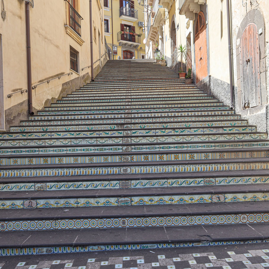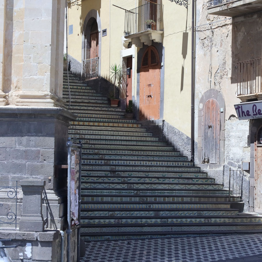 La scalinata è teatro della tradizionale processione dell’Addolorata. La statua della Vergine si ferma per circa un’ora sui gradini, diventando scenario di una “sfida” tra due fazioni locali storiche (“Vitisi” e “San Giuannisi”) che si contendono la vicinanza alla statua stessa.