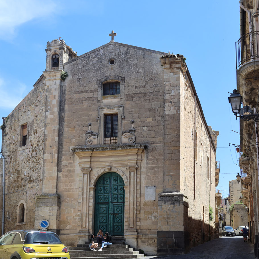 Santa Maria di Gesù che è stata ricostruita dopo il terremoto del 1693, con statue e opere barocche.